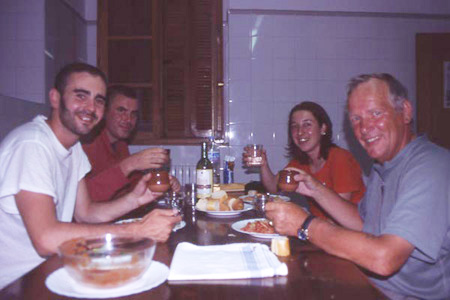 Heike from Germany and Bert from Netherlands toasting at the refugio's kitchen