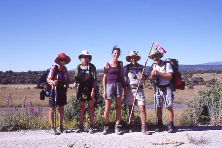 Elizabeth, Frantz and Kurt from Austria smiling outside Rabanal del Camino.