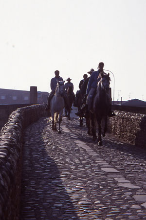 In practise very few, like this group photographed on the Bridge of Hospital de Orbigo, make the pilgrimage on horseback...